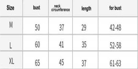 Size chart: